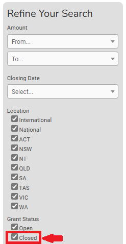 - Get ahead of the curve and include grants that are currently closed in your search.