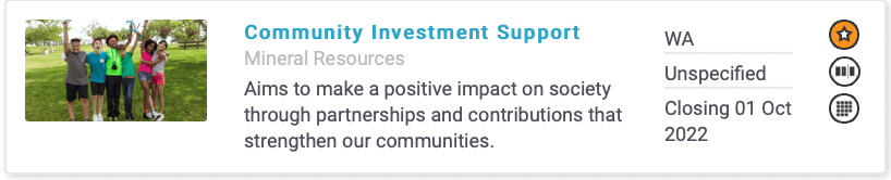 - To add a grant to your Favourites, click on the star icon on the right-hand side of any grant listing