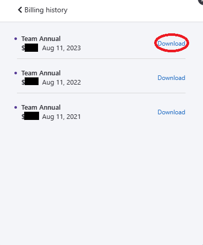 - A pop-up window will open. Click Billing History to view your tax invoices.